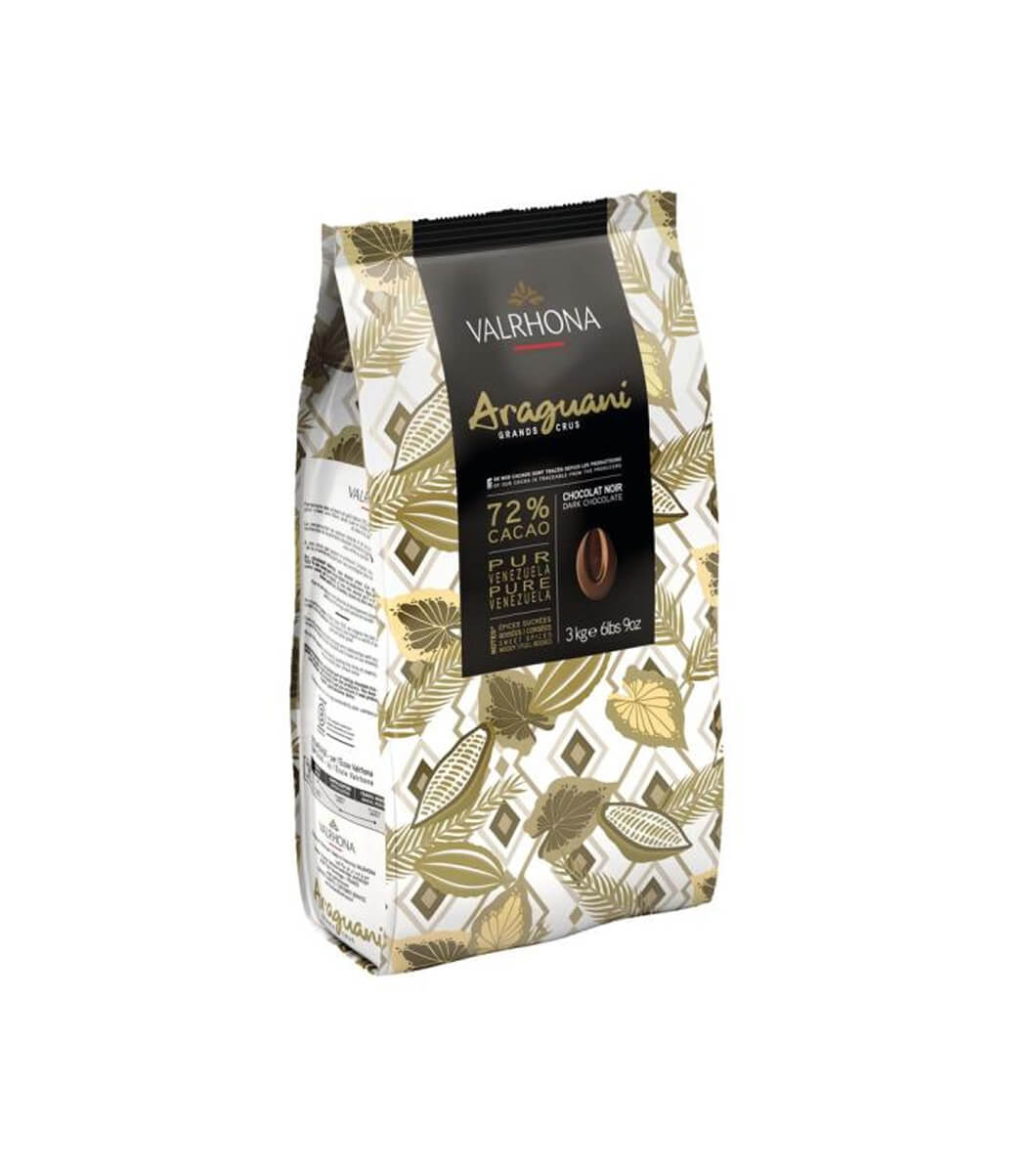 L’Araguani 72% Valrhona est un chocolat de couverture noir d’une profonde intensité aromatique, élaboré à partir de fèves de cacao pure origine Venezuela (région Sur del Lago).