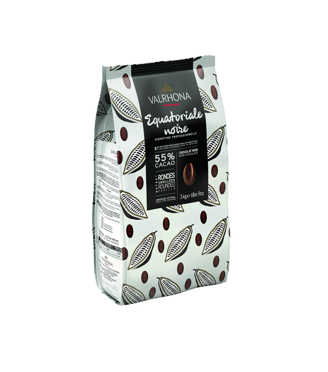 Mots-clés : equatoriale noire 55 valrhona, chocolat noir valrhona 55%, couverture valrhona professionnelle, fèves valrhona noir, chocolat pâtissier valrhona, chocolat pour enrobage, valrhona equatoriale 55