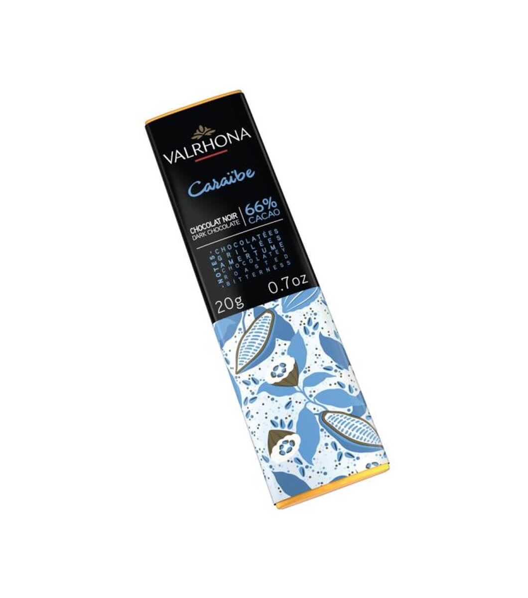 mini tablette caraïbe, chocolat noir valrhona 66%, caraïbe 66% valrhona, mini tablette valrhona, chocolat noir professionnel, chocolat pour hôtel café, bâton caraïbe 20g