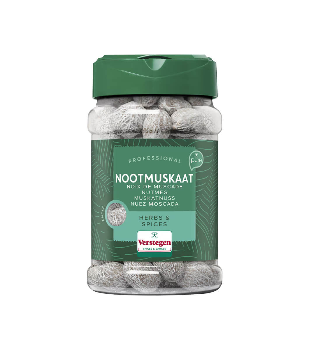 Mots-clés : noix de muscade entière, nutmeg whole Verstegen, muscade Pure, épices naturelles, muscade premium, assaisonnement chaud, épices professionnelles, muscade à râper, épice 100% naturelle, Verstegen Pure.