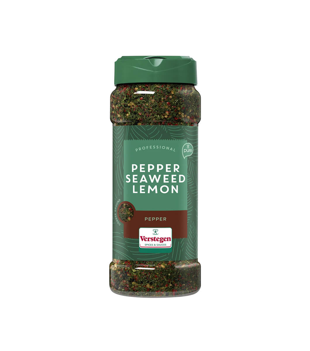 Mots-clés : pepper seaweed lemon, poivre citron, épices algues, Verstegen Pure, assaisonnement poisson, mélange marin, épices fruits de mer, strooibus medium, poivre baies roses, assaisonnement iodé, cuisine marine.
