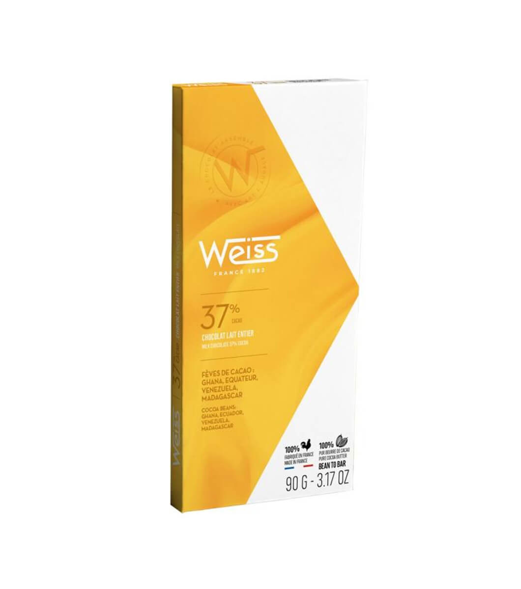 Mots-clés : tablette chocolat au lait 37%, chocolat au lait premium, chocolat Weiss Maroc, chocolat pâtisserie, chocolat gourmand