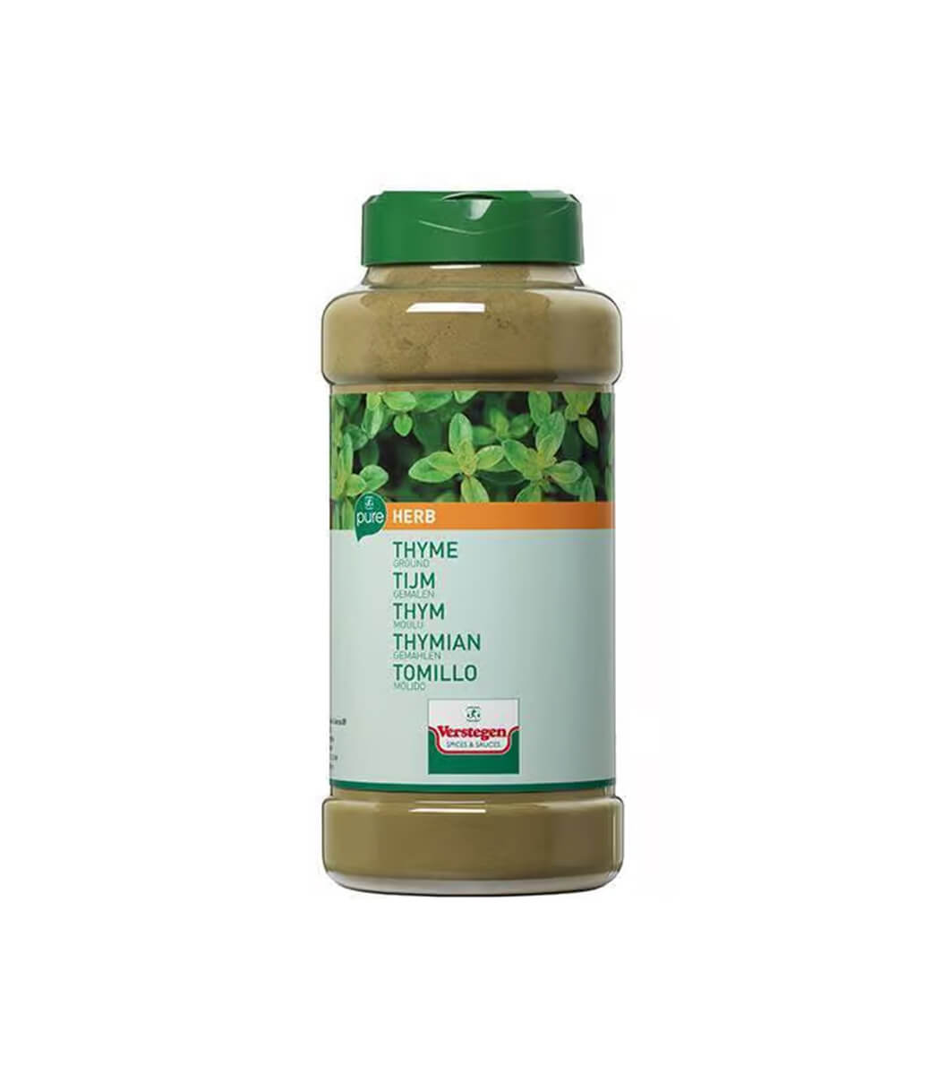 Mots-clés :thym moulu, thyme ground, herbes aromatiques, Verstegen PURE, assaisonnement naturel, cuisine méditerranéenne, épices premium, aromate thym, herbes sèches, ingrédients naturels.