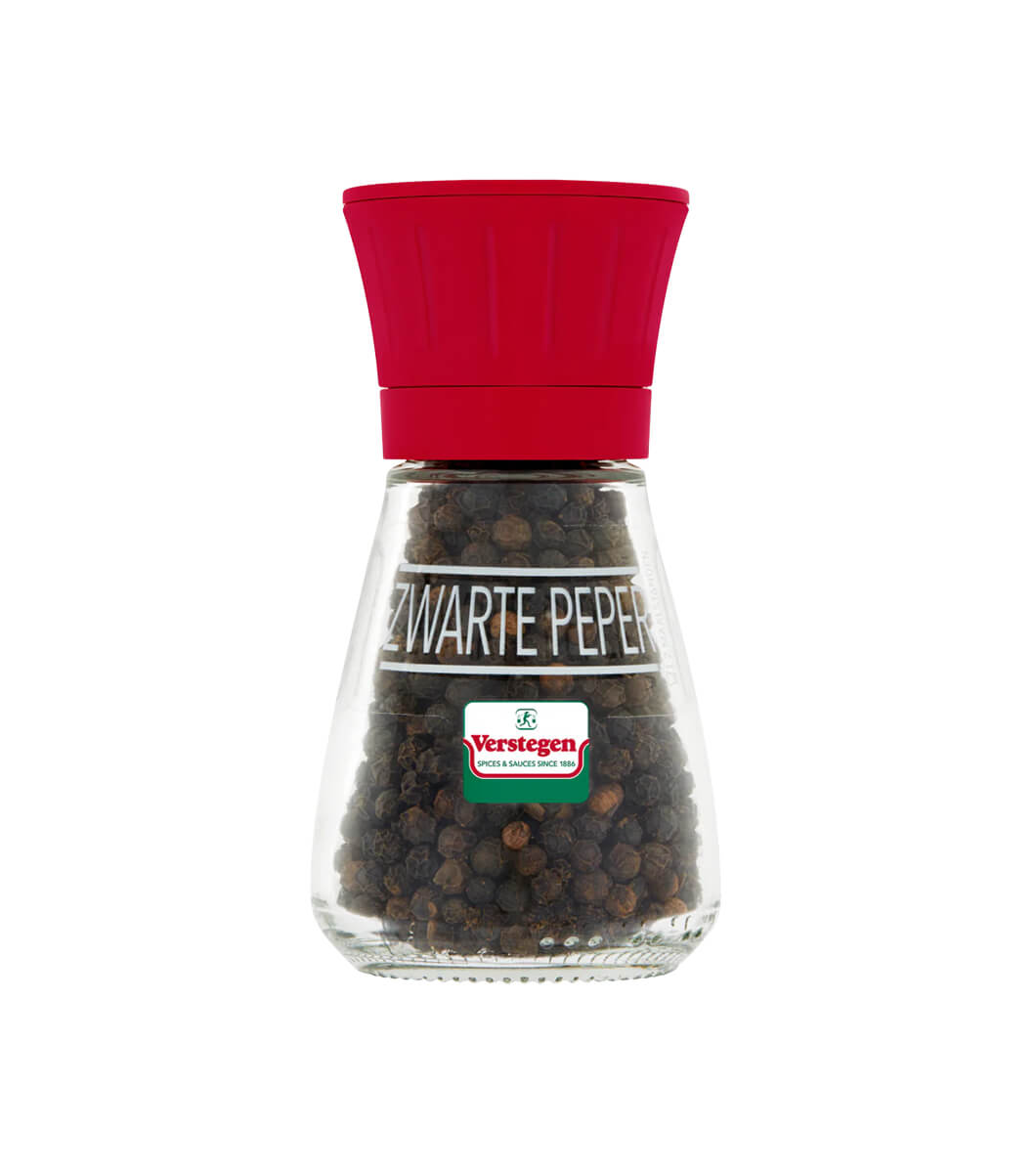 Mots-clés : poivre noir sel, zwarte peper zeezout, moulin épices, sel poivre mélange, assaisonnement quotidien, Verstegen moulin, sel gourmet, poivre cuisine, moulin réglable, condiments table.